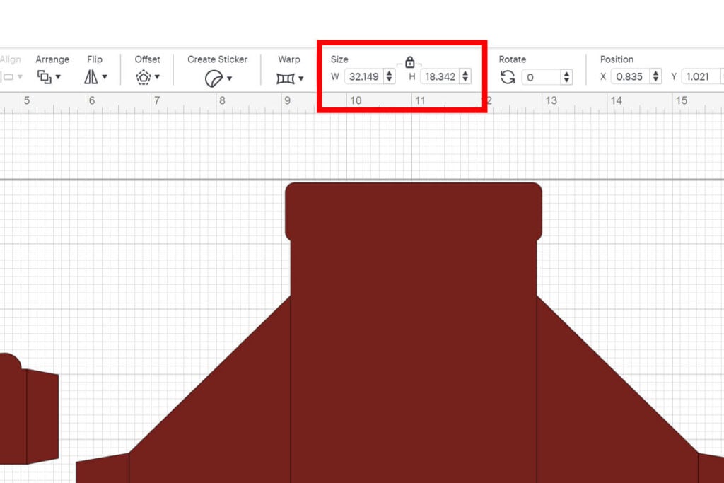 Upload the Christmas card SVG to Cricut Design Space. If you need help with uploading SVG files, then check out my tutorial here. Make sure to check the size of your project and adjust if needed. Click on the image (while everything is grouped together) and the width should be 32.149″ and the height 18.342″.